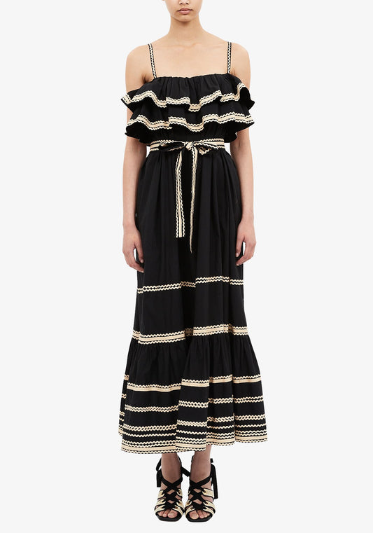 Sold outLucian Waist Tie Long Dress in Noir