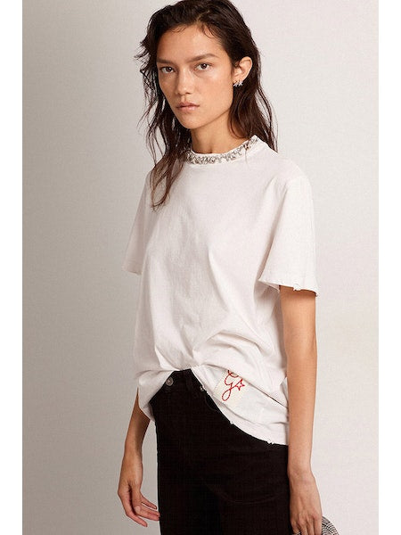 T-shirt in white with cabochon crystals