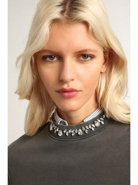 Sweatshirt in anthracite grey with cabouchon crystals