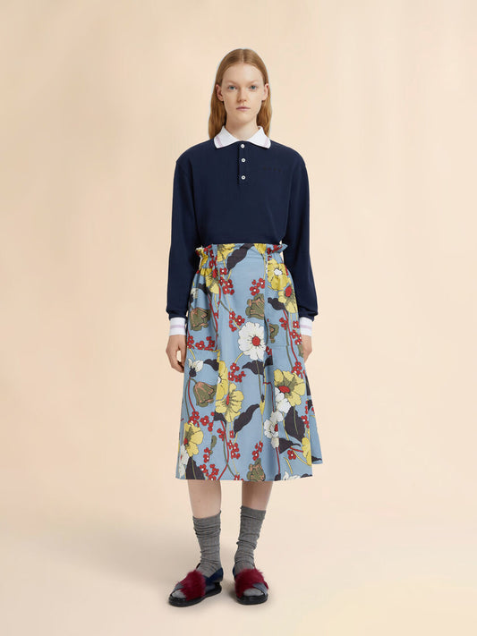 Blue Envers Satin Pyjama Shirt with Melodia print