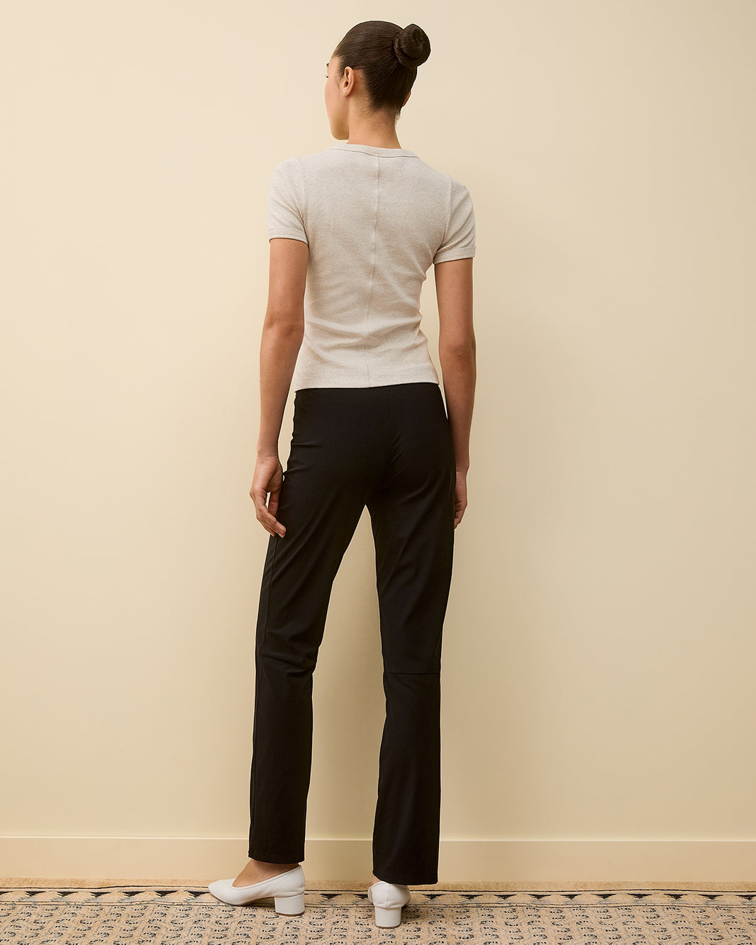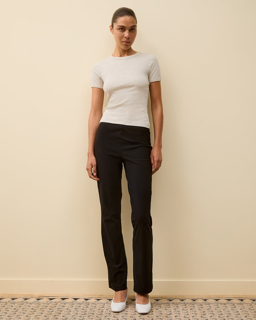 A fitted tee with a lengthened short sleeve, round bindings, and a double-stiched cut-off seam on the back. Made from soft, medium-weight organic cotton rib, perfect for layering