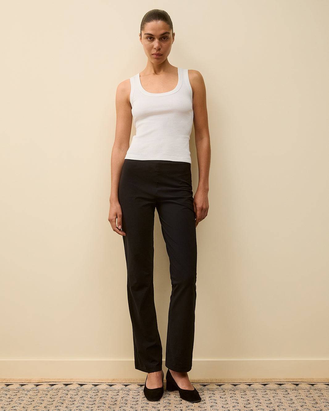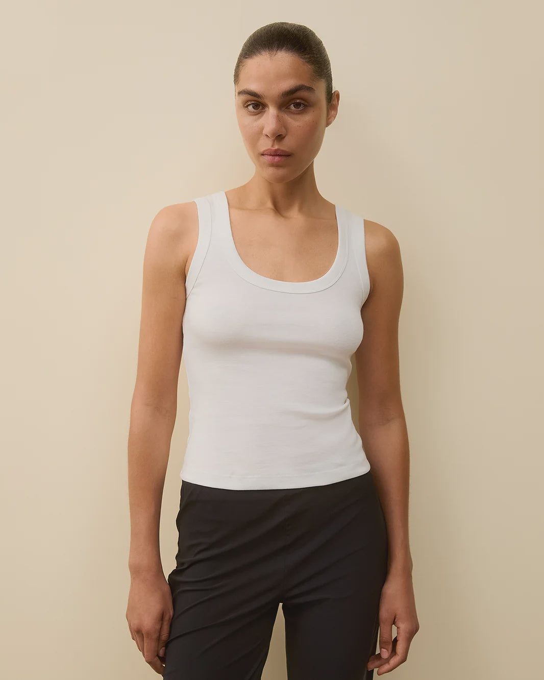 A classic fitted tank with a feminine scoop neck and back, and a double-stitched cut-off seam on the back, made from medium-weight organic cotton. Pair simply with jeans or trousers.