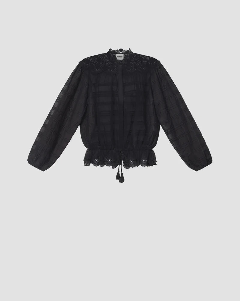 Organic cotton and floral lace blouse